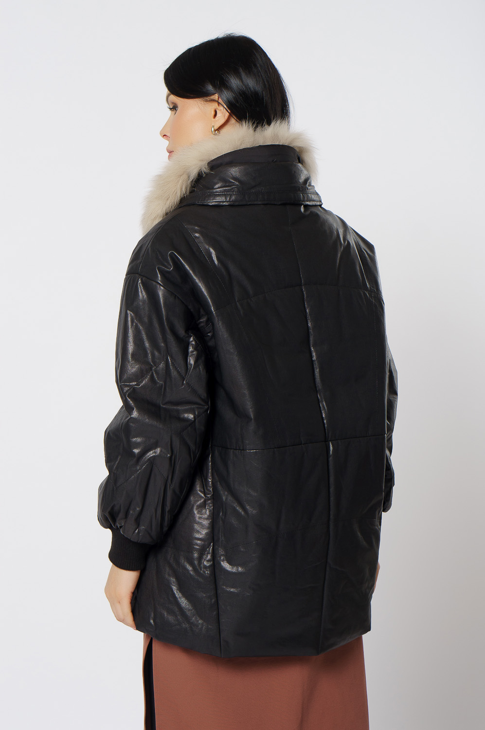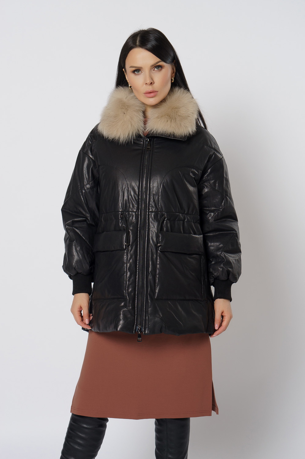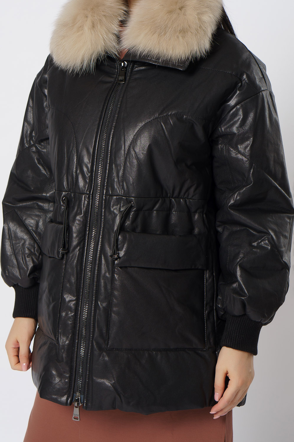 Утепленная кожаная куртка с песцом