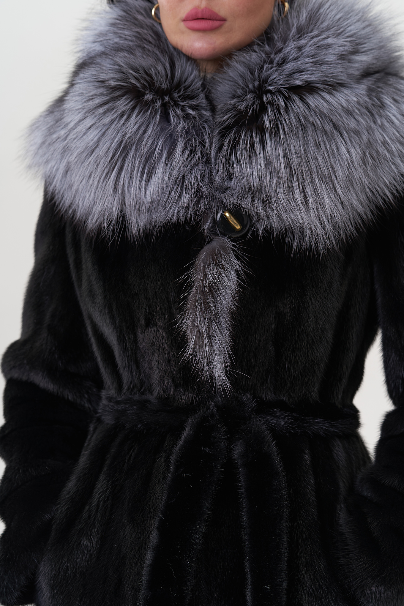 Тип ворота - капюшон, отделка - чернобурка